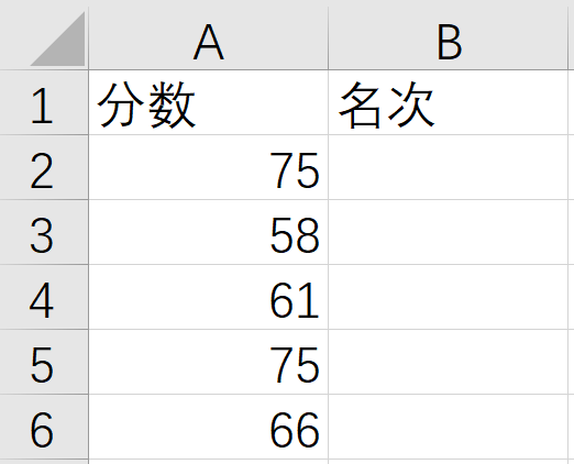 前面介绍了简单的公式复制,在实际工作中可能还需要处理更加复杂的情况,比如,有一些考试分数需要从大到小进行排名,如下图给出了几个分数,需要对其排名。