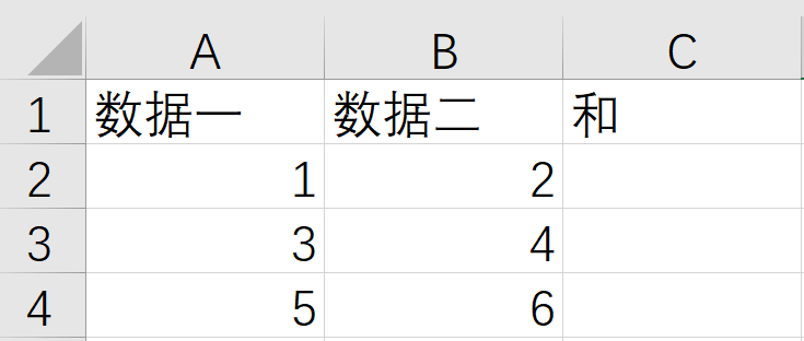 处理数据时,多行记录中的计算公式可能相同,只是参与计算的数据不同,此时就可以考虑公式的复制,如下图所示,我们在表格中输入几行数据。