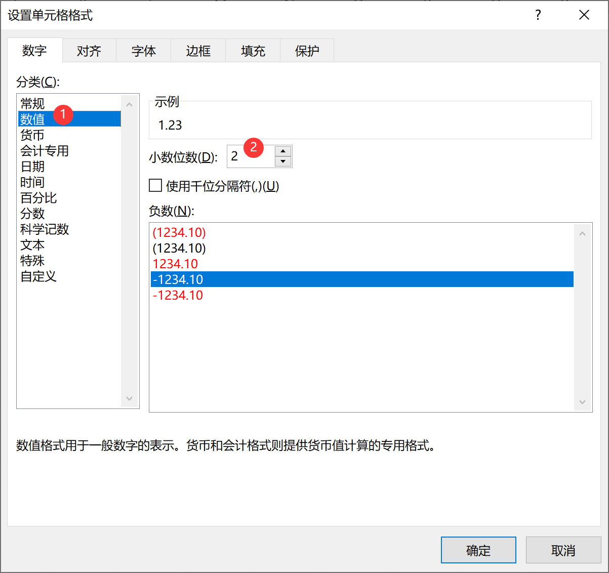 设置数据显示的小数位时,可以通过“开始”选项卡>>“数字”组中的“增加小数位数”和“减少小数位数”按钮进行调整,也可以打开“设置单元格格式”窗口,在“数字”页中选中“数值”,然后调整小数位数,如下图。