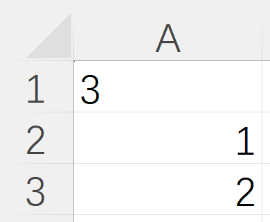 在A1单元格输入“3”,将单元格格式设置为文本,可以看到单元格内容会左对象;在A2单元格输入数字2,A3单元格输入数字1,这两个单元格使用默认的常规格式,此时会识别为数字,单元格内容会右对象。接下来对A列数据进行排序,点击选中包含数据的任意一个单元格,然后选择“开始”选项卡>>“编辑”组>>"排序和筛选"按>>“升序”项,可以看到1和2会按数字升序(从小到大)排列,而A1单元格的文本3不会参与排序,如下图。