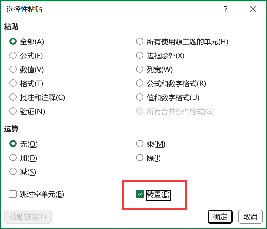 可以看到粘贴后的数据行和列进行了转换,如下图所示,
