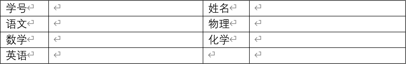 接下来打开Word应用并创建一个新的文档,在文档中创建成绩单的模板表格,如下图所示。