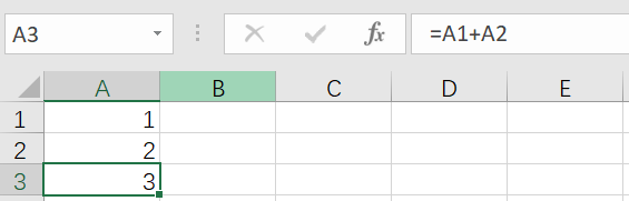 选中单元格后,单元格中的实际内容会在“编辑栏”中显示,而工作表中的单元格显示内容会根据单元格格式的设置而定,工作时应注意单元格显示内容和实际内容的区别。比如,在A1单元格中输入数字1,在A2单元格中输入数字2,然后在A3单元格中输入“=A1+A2”并回车,此时可以观察A3单元格的显示内容为3,而在“编辑栏”中会显示输入的公式“=A1+A2”,如图。